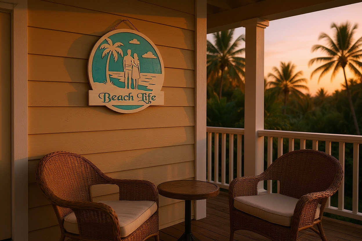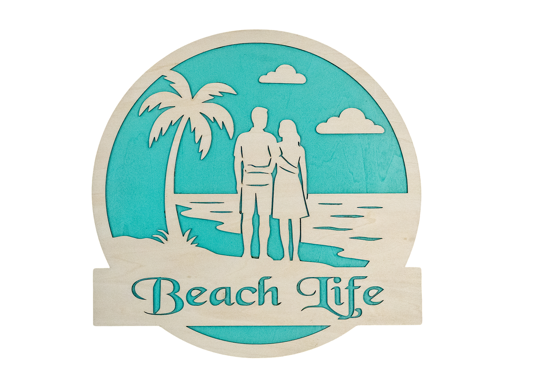 Expertly laser-cut from high-quality birch wood and backed with a vibrant turquoise accent, this sign offers a charming blend of natural elegance and tropical flair—perfect for beach homes, summer cottages, or any room needing a touch of ocean-inspired relaxation.