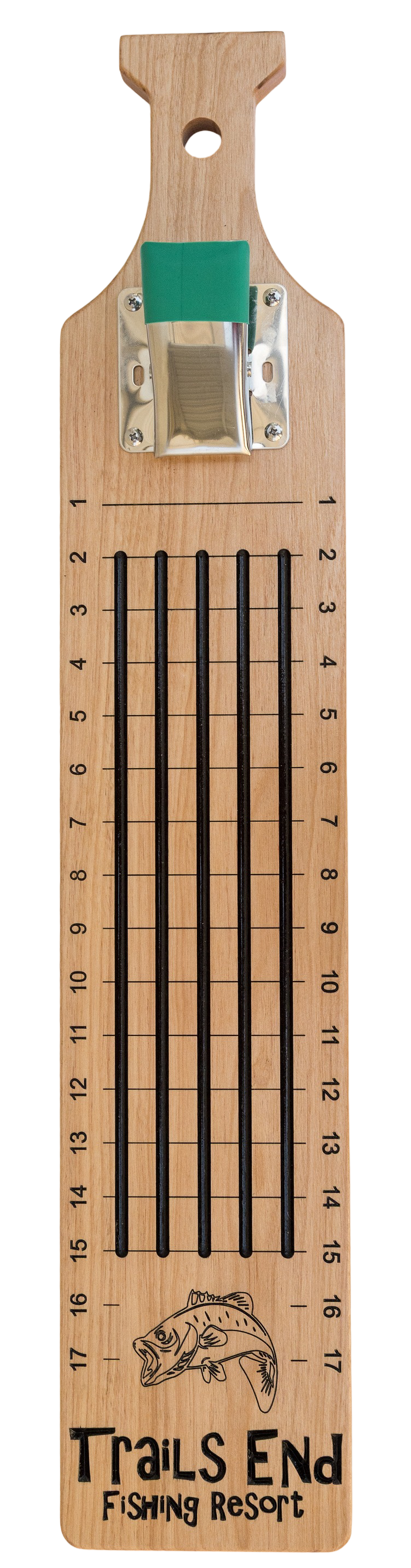 Perfect for fishing resorts, cabins, boats, or backyard fish fries, this board also includes a personalized engraving area—ideal for adding your name, camp, or business like the example shown with Trails End Fishing Resort. The fish graphic adds a rugged, outdoorsy touch for anglers who take pride in their catch.